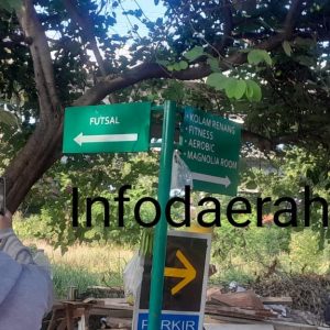 Pada tiang itu tertulis arah “Putsal” dan tertulis arah ‘kolam renang’ ‘Fitnes’, ‘Aerobic’, serta penunjuk arah, tertulis ‘Mangnolia.